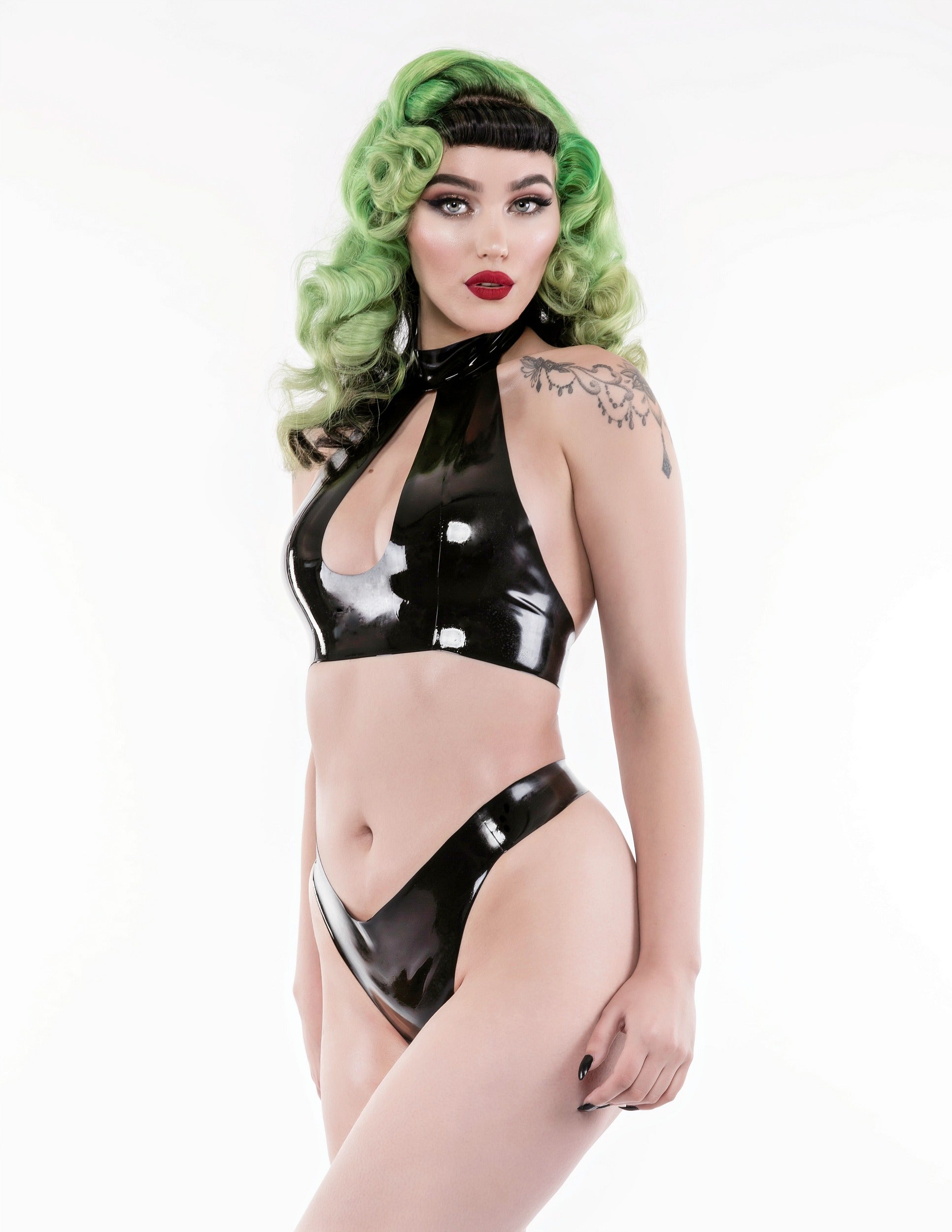 For those that aren’t familiar with latex, The Back to Basics collection is one that can be mixed and matched with any of our other collections or even your everyday clothing as an easy introduction to latex wear. Back to basics is a collection that doesn’t follow any trends. Its shapes are timeless and can be worn in every season. The simplicity of these garments mean you can dress them up or down with the option to customise with colour.