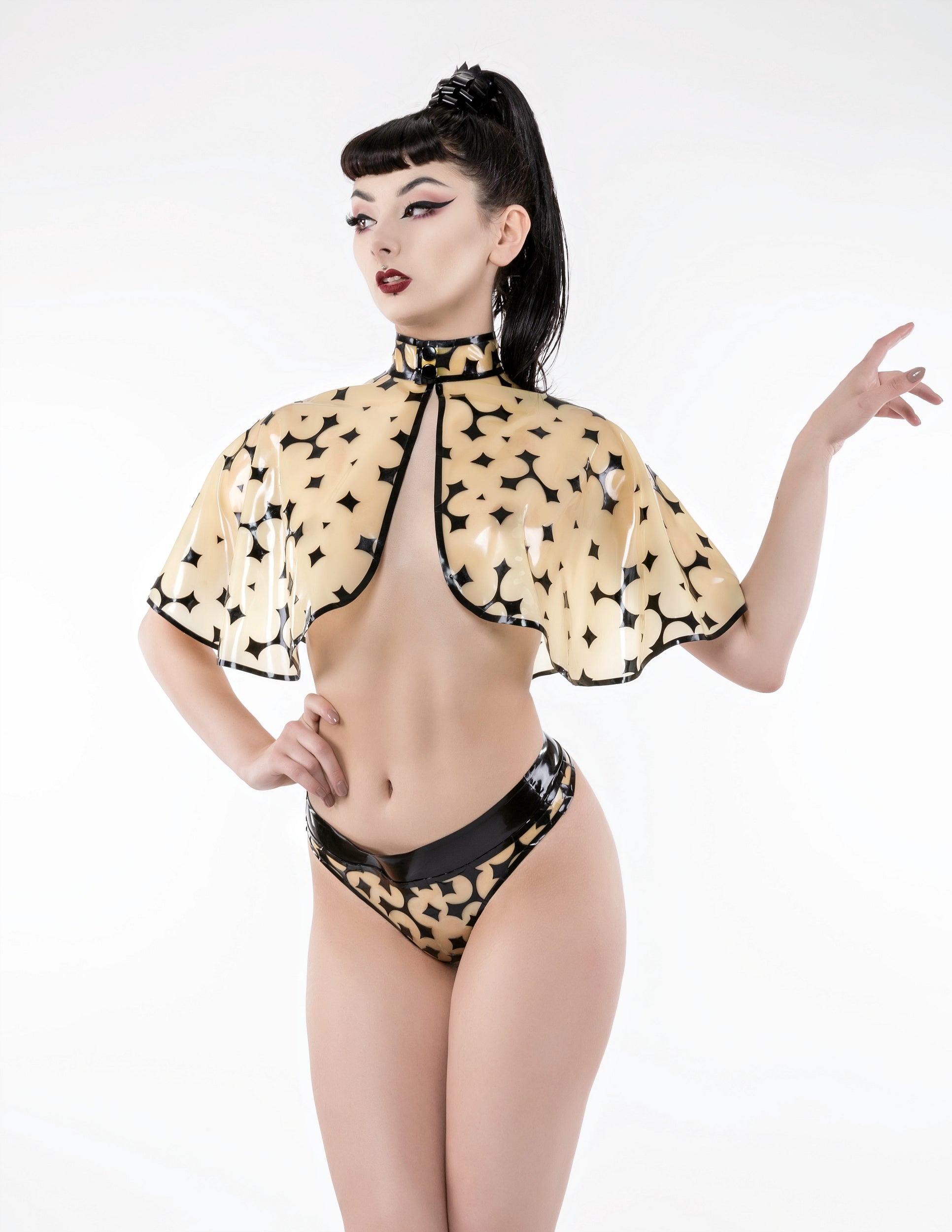 iLLUSION will make you fantasise, it’s simplistically alluring with its combination of black and nude to give the Illusion of nudity for the cheeky minxes. The laser cutting is a less intricate print with only one shape present but rotated in various directions so complete a triangular cluster. Additional pointed edges on the decorative laser cut trim, sharp to miss.